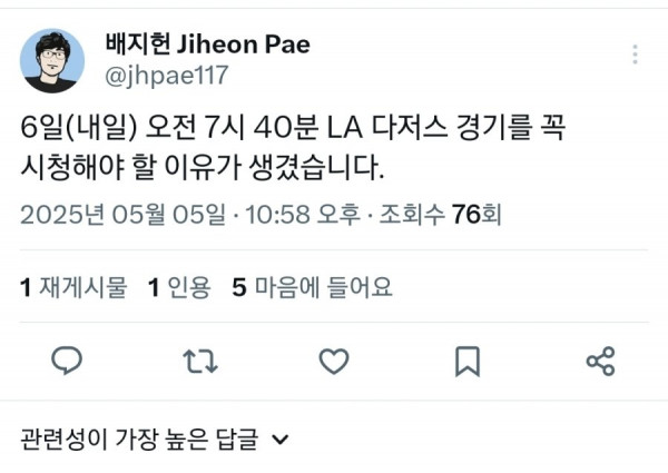 김혜성 선발출전 암시글인가요.. 모텔알바 2 1564 0 0 05.06 03:29 확정은 아닌데 기대는 해봅니다 다저스나 넥센팬 김혜성팬분들계신다면 시청하시면 좋을거같네요 0 0 Author 0 1 Lv.50 모텔알바 골드 385,089 (18.8%) 등록된 서명이 없습니다. +1 10.21 한화 믿은 내가 빙신???? +1 10.02 엘지 정규시즌 ? 우승 +1 09.30 한화 끝내기샤샤샷샷 +4 09.30 MLB 포스트시즌 대진표 09.16 기아는 진짜