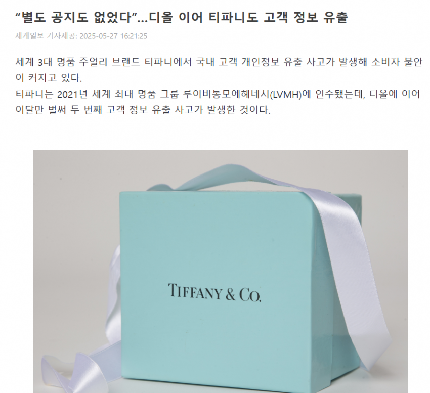 디올에 이어 티파니도 개인정보 유출